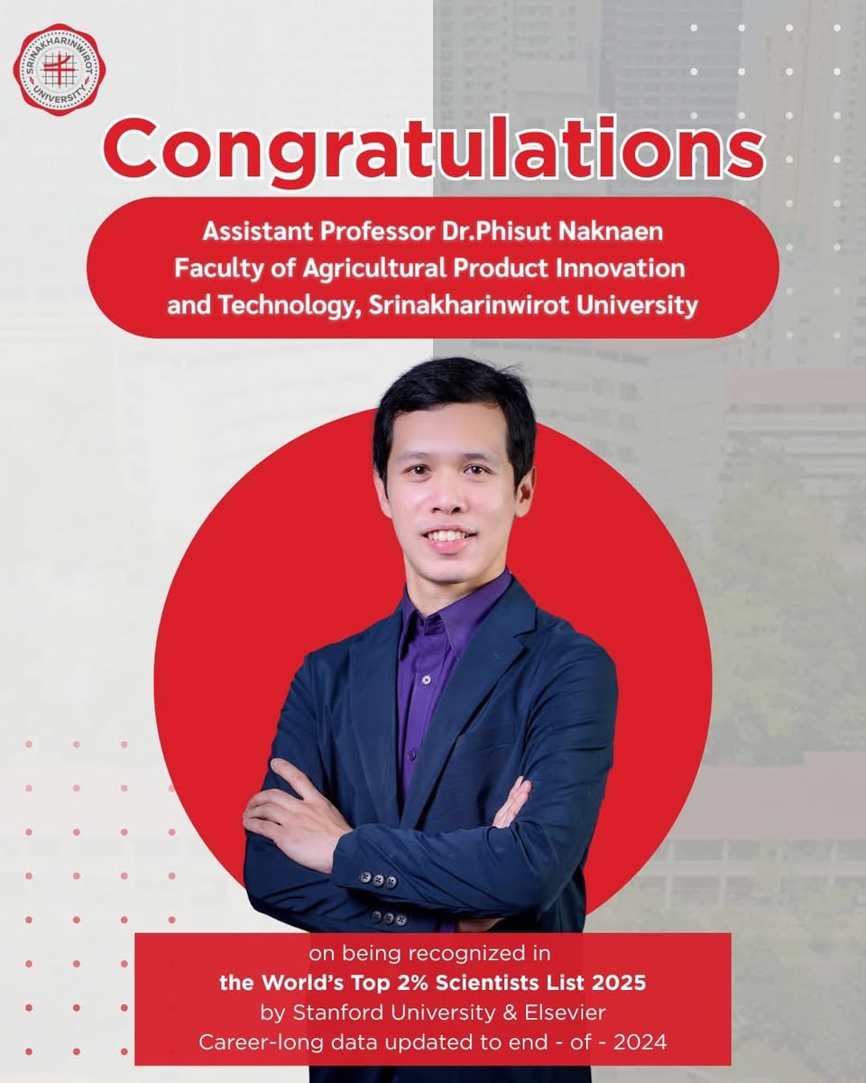 Anirut S / 6 พฤศจิกายน 2568 / Categories: การแสดงความยินดี ขอแสดงความยินดีกับ ผู้ช่วยศาสตราจารย์ ดร.พิสุทธิ หนักแน่น ที่ได้รับการเชิดชูเกียรติ ในการประชุมวิชาการ มศว วิจัย “วันนักวิจัย ประจำปี 2568 สภาคณาจารย์และพนักงาน มหาวิทยาลัยศรีนครินทรวิโรฒขอแสดงความยินดีกับ ผู้ช่วยศาสตราจารย์ ดร.พิสุทธิ หนักแน่น ที่ได้รับการเชิดชูเกียรติ ในการประชุมวิชาการ มศว วิจัย “วันนักวิจัย ประจำปี 2568 Srinakharinwirot University Research Conference SWU Research Day 2025” เนื่องจากเป็นนักวิจัยที่ได้รับการอ้างอิงสูงที่สุด World's Top 2% of the Most - cited Scientists 2024 จาก Standford University Previous Article เข้าร่วมประชุมคณะกรรมการที่ประชุมข้าราชการ พนักงาน และลูกจ้างมหาวิทยาลัยแห่งประเทศไทย (ปขมท.) สมัยสามัญ ครั้งที่ 120 (4/2568) Next Article เข้าร่วมพิธีทำบุญอุทิศถวายเป็นพระราชกุศลแด่สมเด็จพระนางเจ้าสิริกิติ์ พระบรมราชินีนาถ พระบรมราชชนนีพันปีหลวง วันพุธที่ 5 พฤศจิกายน 2568 Print 4