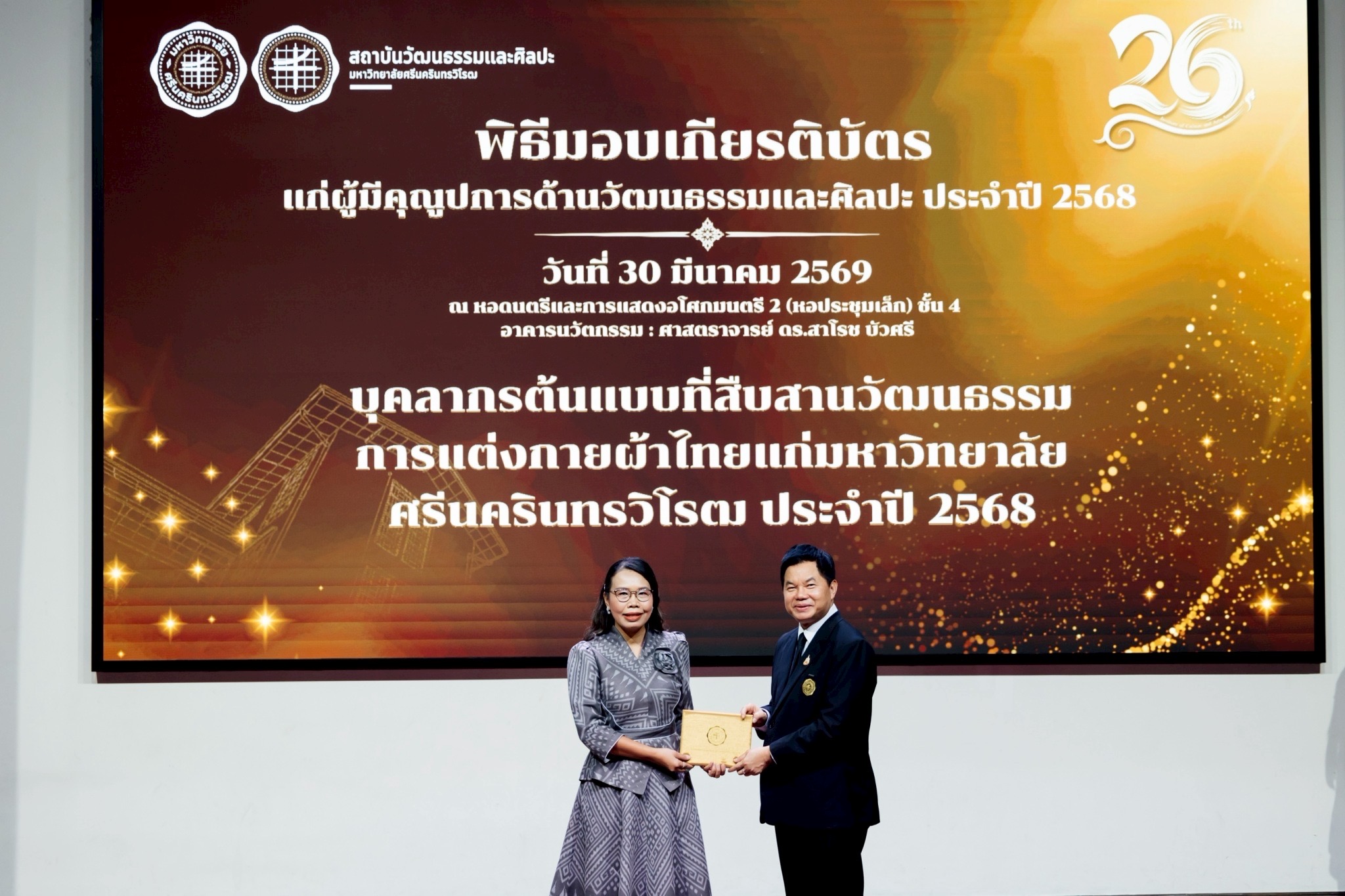 พิธีมอบเกียรติบัตรเชิดชูผู้มีคุณูปการด้านวัฒนธรรมและศิลปะ ประจำปี 2568 เนื่องในโอกาสวันสถาปนาสถาบันวัฒนธรรมและศิลปะ ครบรอบ 26 ปี